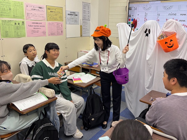 英語セミナーでも10月はハロウィンの飾りつけをして楽しみます。